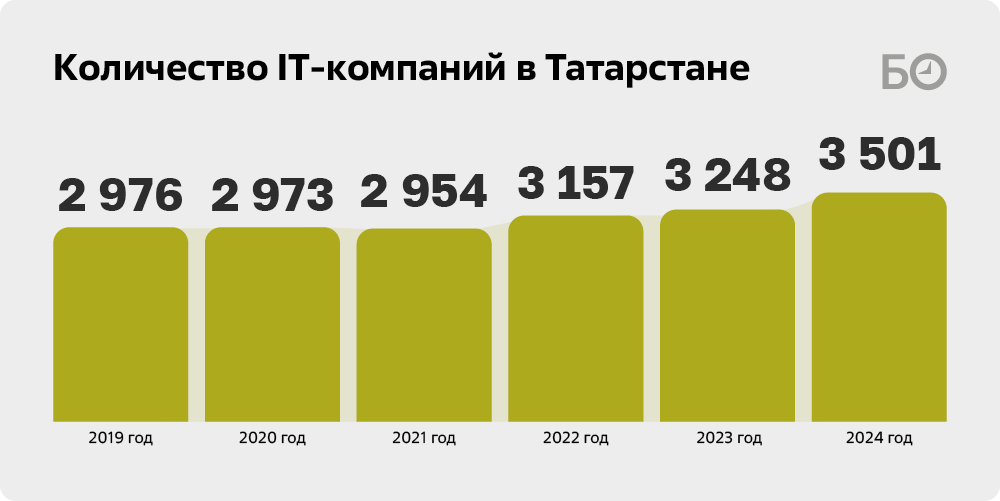 Официальная статистика — на 2024-й — сугубо положительная. Количество занятых в IT продолжает расти, достигнув почти 42 тыс. человек, а число компаний выросло до 3,5 тысячи. Валовая выручка отрасли, по данным минцифры РТ, достигла 256 млрд рублей, при этом направление разработки ПО, консультаций и сопутствующих услуг показало рост на 42%, а производство компьютеров и периферийного оборудования — на 25%. Российская IT-отрасль в целом демонстрирует впечатляющую динамику — 45% роста по объему реализации собственных решений, отмечал на Kazan Digital Week министр цифровизации Максут Шадаев. В Татарстане темпы еще выше — за пять лет рост составил 4,4 раза.