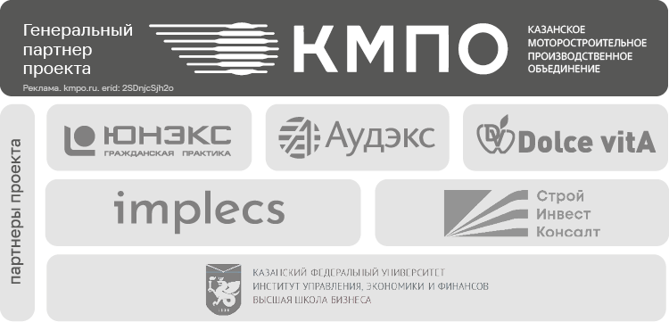 Редакция благодарит генерального партнера проекта «Топ-300» АО «Казанское моторостроительное производственное объединение», а также партнеров: аудиторско-консалтинговую компанию ООО «АКК «Аудэкс», юридическое агентство «Юнэкс», официального партнера 1С «Имплекс», специализированного застройщика «Дольче Вита», девелоперскую компанию «Строй Инвест Консалт», высшую школу бизнеса МВА КФУ.