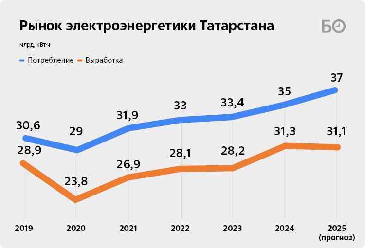 С растущим спросом татарстанские энергостанции, увы, не справляются. За этот же период собственная выработка в республике снизилась на 2,5% до 27,7 млрд киловатт-часов