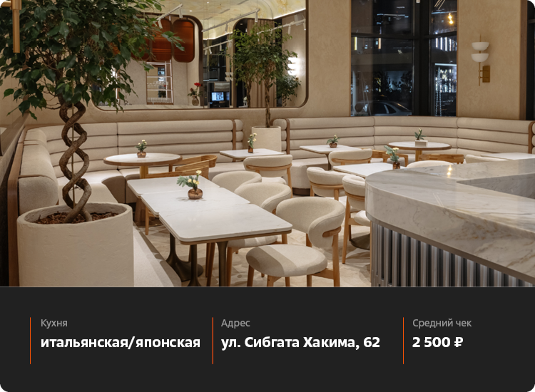 Ресторан на Галактионова ждал своего открытия с сентября 2024-го. За это время проект успел кардинально измениться: изначально у рестораторов был задан курс на Италию, а в итоге охватили и Азию, и Эмираты — меню составлено без жестких жанровых рамок. Здесь и буратта с печеным перцем, и соленья с сельдью, и паштет с карпаччо. Есть гунканы с крабом и лососем, крылья BBQ, пицца и чизкейк «Дубайский шоколад». Формат получился «трукостовым» — вход в заведение стоит 100 рублей до 15:00, 250 рублей до 17:00, 350 рублей до 23:00.