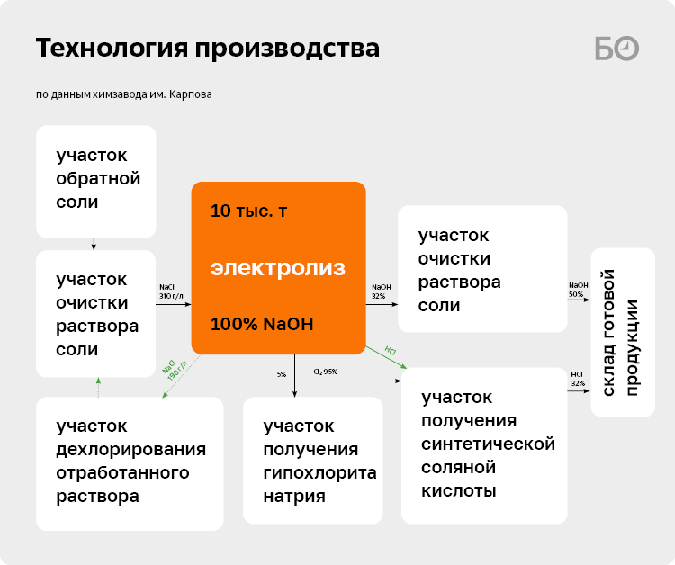 Чтобы выйти из кризиса, завод еще в 2024-м затеял новый инвестпроект «Электролиз». Новое производство нацелено на выпуск 26,3 тыс. т соляной кислоты (или 8,8 тыс. т хлора), 10 тыс. т каустика и 2,5 тыс. т гипохлорита натрия. Инвестиции в новый проект составят 3 млрд рублей — 1,3 млрд из них выделил фонд развития промышленности, оставшуюся часть (1,7 млрд рублей) профинансируют акционеры из собственных средств.