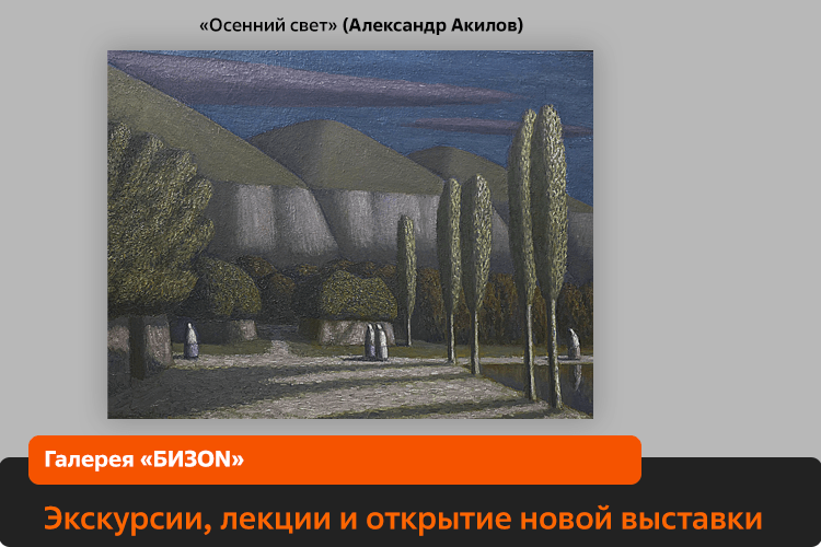 Справка: «БИЗОN» — это галерея современного искусства, которая открылась в Казани в 2018 году. За время своей работы она организовала более 50 выставок, среди которых произведения Эрика Булатова, Михаила Шемякина, Аристарха Чернышева, Ивана Плюща, Ольги Тобрелутс, Вовы Перкина и арт-группы «Наша утопия», Даниила Кудряшова, российско-китайского художника Си Ло, а также совместные проекты с ведущими московскими и питерскими галереями.