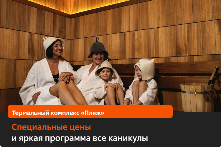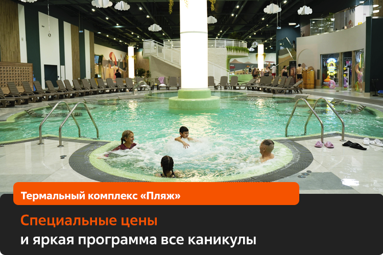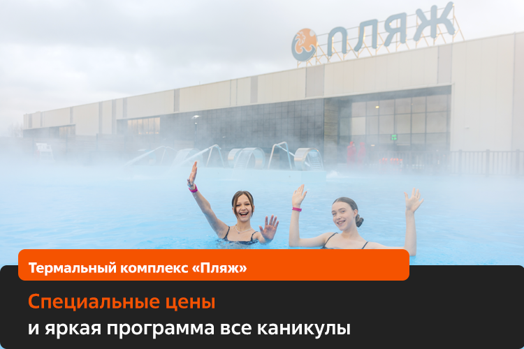 В период весенних каникул термы «Пляж» будут работать по специальным ценам выходного дня по акции «Дыхание весны». Стоимость часа — 570 рублей (тарифы действуют от 2 часов).