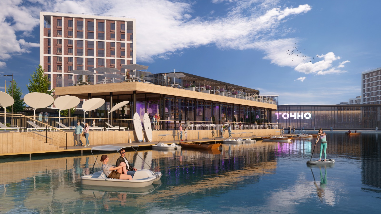 В локациях въезда и круговых перекрестков вдоль уличного и дорожного трафика — «зоне повседневного спроса» — расположат продуктовые магазины, аптеки, товары для дома, кофейни, бытовые услуги. А в «прогулочном ядре» проекта — собственном озере с круглогодичной инфраструктурой и пешеходным бульваром — сконцентрируют бистро, кафе, магазины с детскими и спортивными товарами, студии и секции. Вокруг водоема площадью 8,8 тыс. кв. м девелопер также построит пляж, панорамный ресторан, ярмарочную площадь, набережную и прокатную лодочную станцию.
