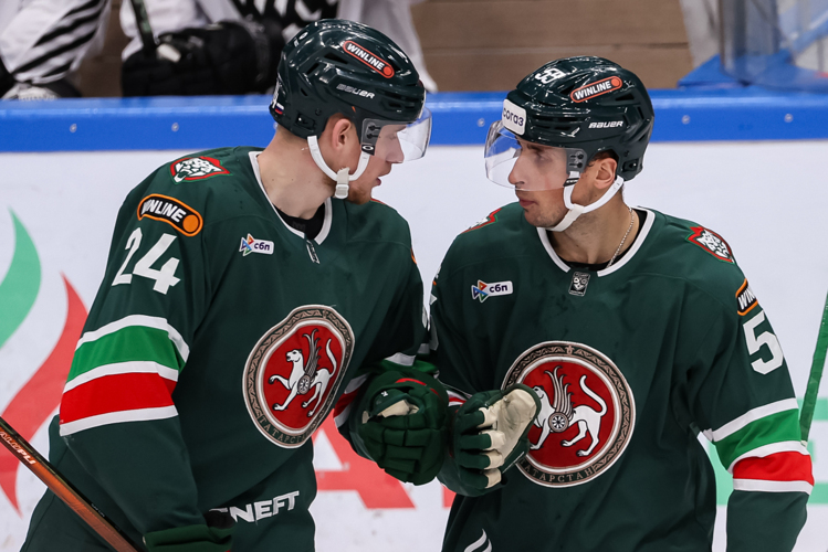 В моменте с первым голом защитник Степан Фальковский подключился к атаке, набросил на ворота, после чего с пятачка шайбу в ворота забросил форвард казанцев Александр Хмелевский. Эта же связка организовала второй гол: белорусский защитник отдал передачу — американский форвард отправил шайбу в ворота.