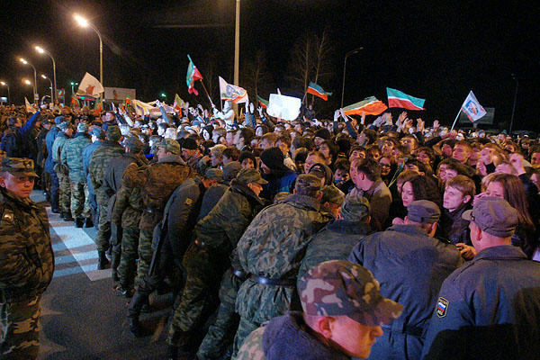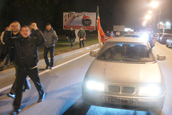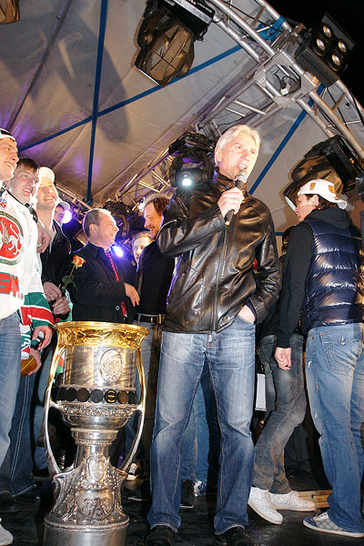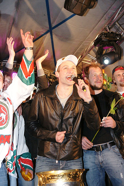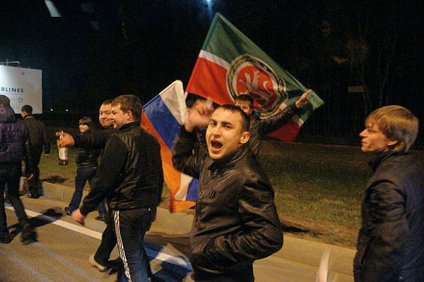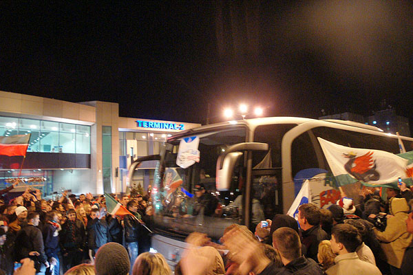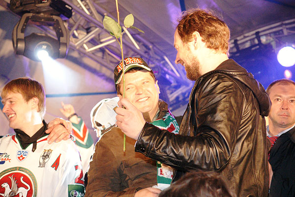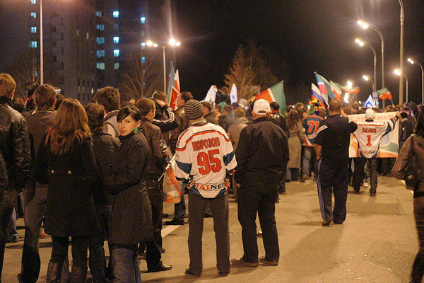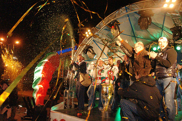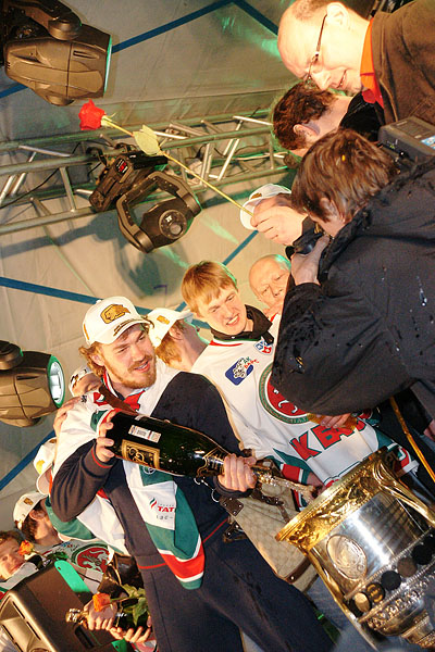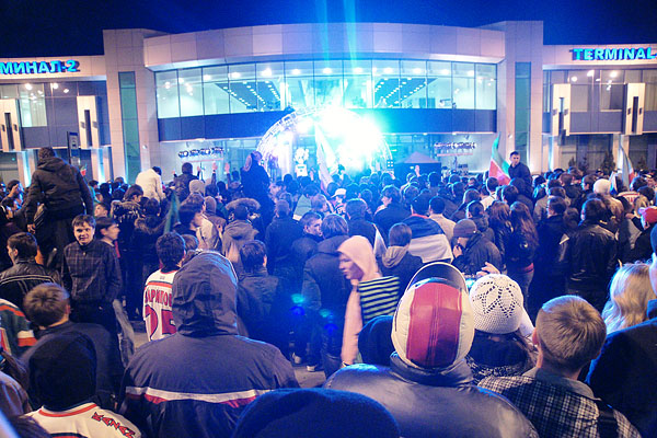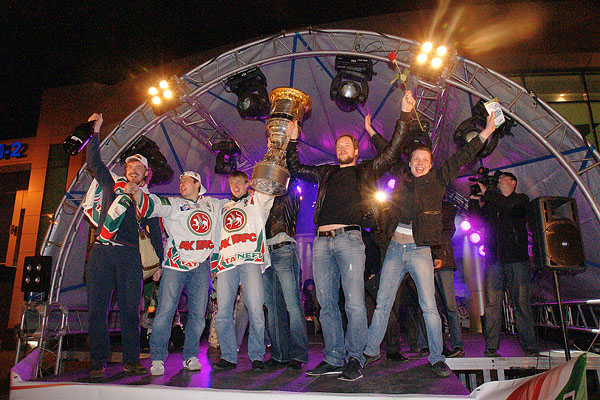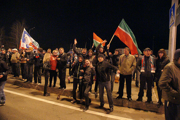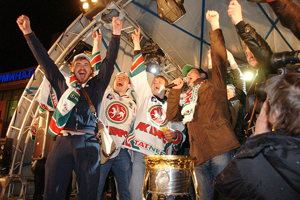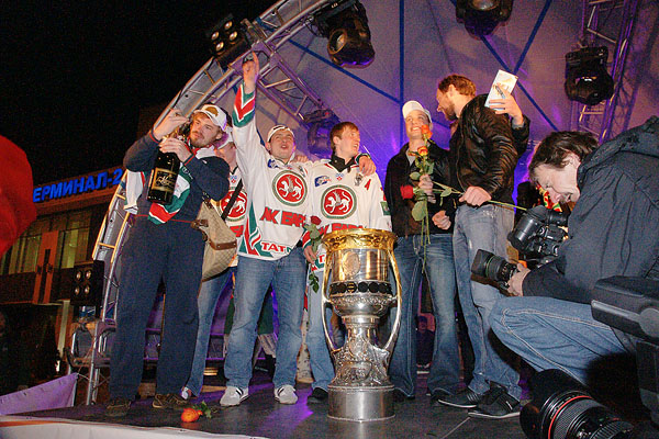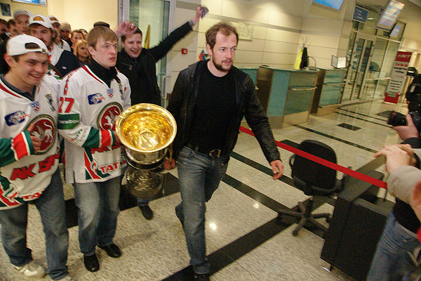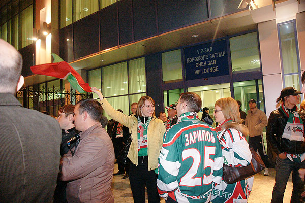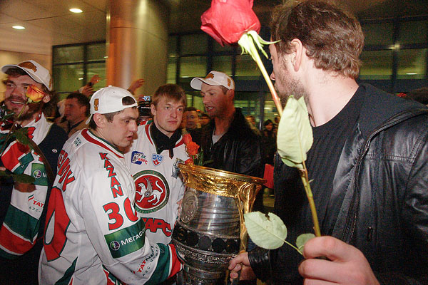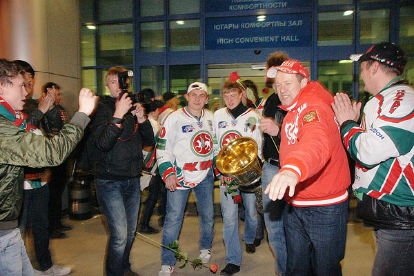 Сегодня ночью сотни болельщиков встречали в международном аэропорту «Казань» чемпионов страны и уже двукратных обладателей Кубка Гагарина по хоккею команду «Ак Барс». Фото Ильи Лавриненко, 28.04.2010