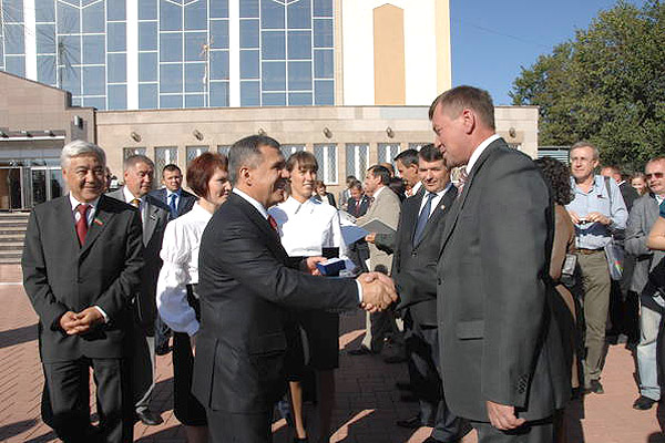 Сегодня в Альметьевске проходят торжества по случаю Дня работников нефтяной и газовой промышленности и 60-летию Татнефти. В мероприятиях принимают участие президент РТ Рустам Минниханов и спикер Госсовета РТ Фарид Мухаметшин. Фото prav.tatarstan.ru, 4.09.10